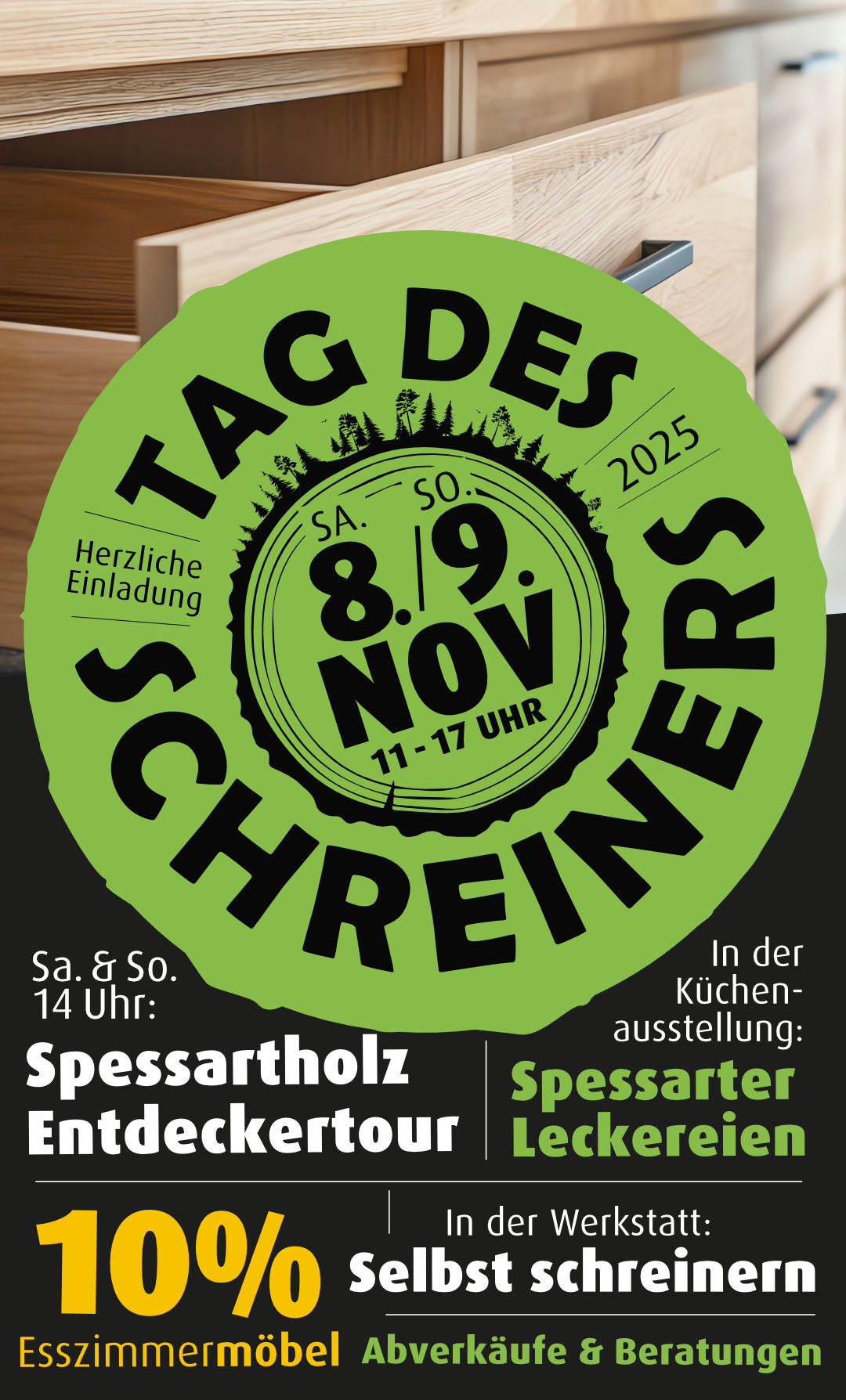 Wir laden Sie herzlich ein, am 8. und 9. November zu unserem Tag des Schreiners!